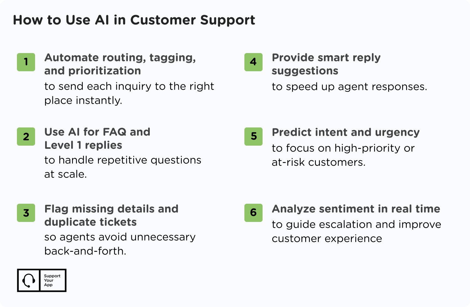 Let’s some up how you can use AI in ecommerce customer support in the table below.
